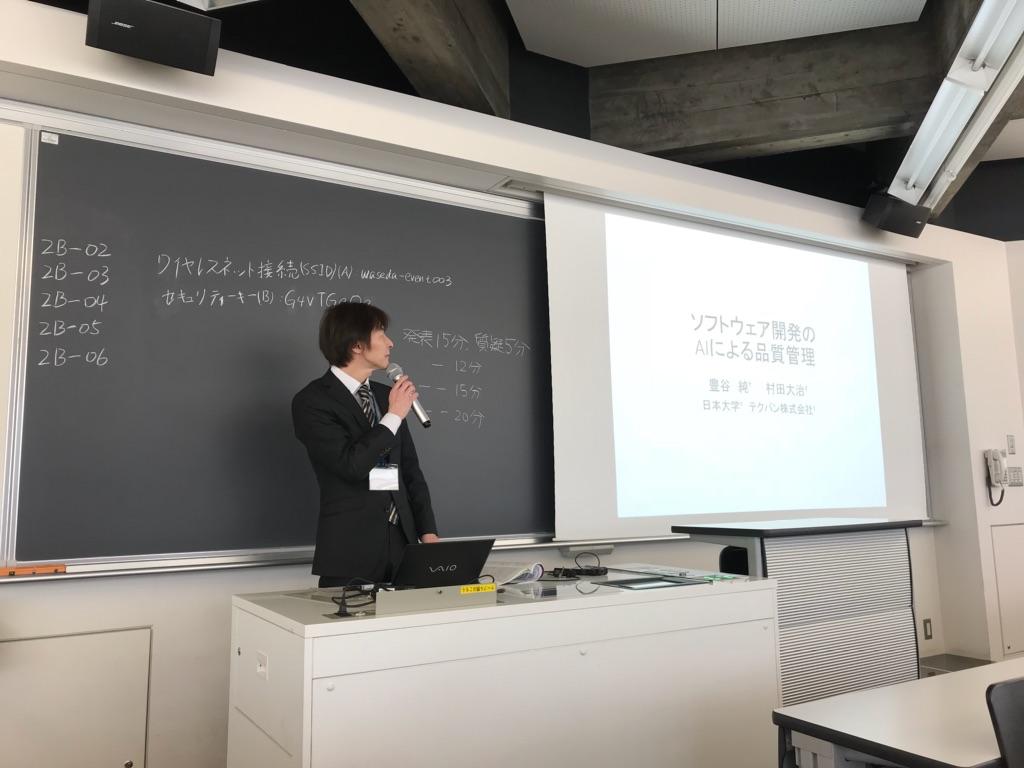 当社は、日本大学生産工学部マネジメント工学科豊谷純教授と共同で、『ソフトウェア開発のAIによる品質管理』の研究発表をいたしました。