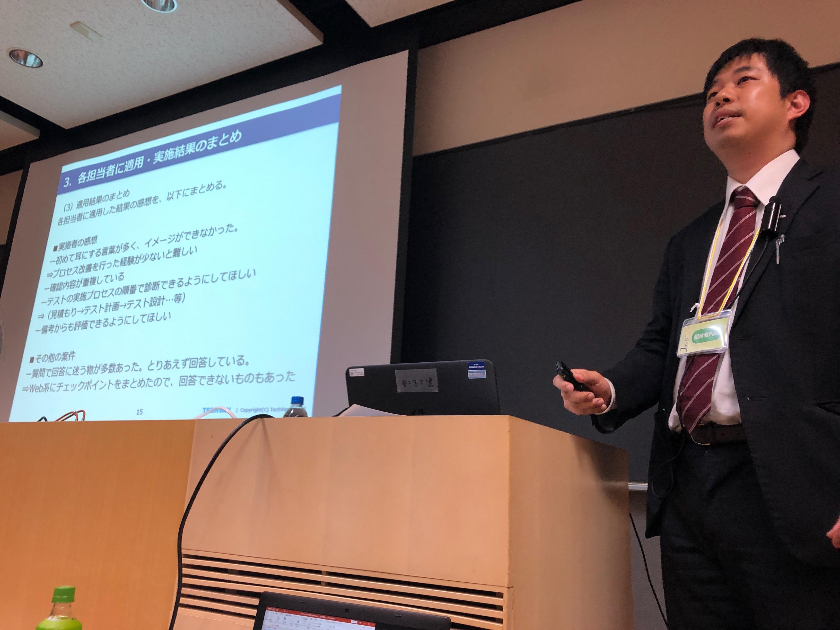 本イベントでは、当社ITソリューション部の大羽が『TPI-Next®を用いたテストプロセス改善の実施』というタイトルで発表を行いました。