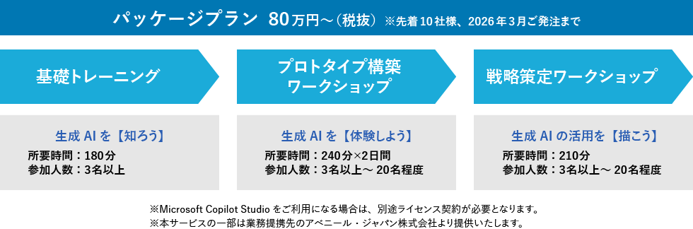 Microsoft Copilot Studioで実現したいご要望を検証・構築したいお客様を対象としたプランです。