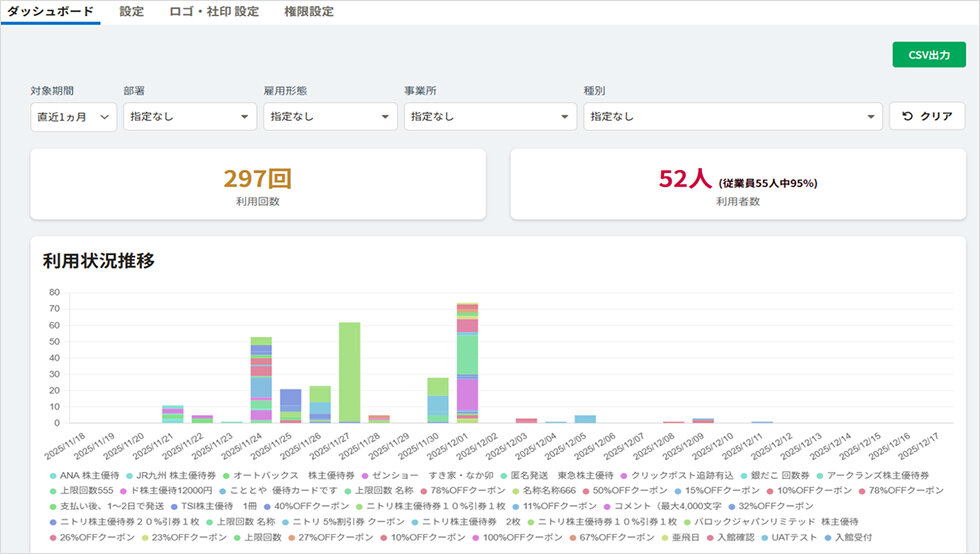 ・利用状況のダッシュボード表示/CSV出力
